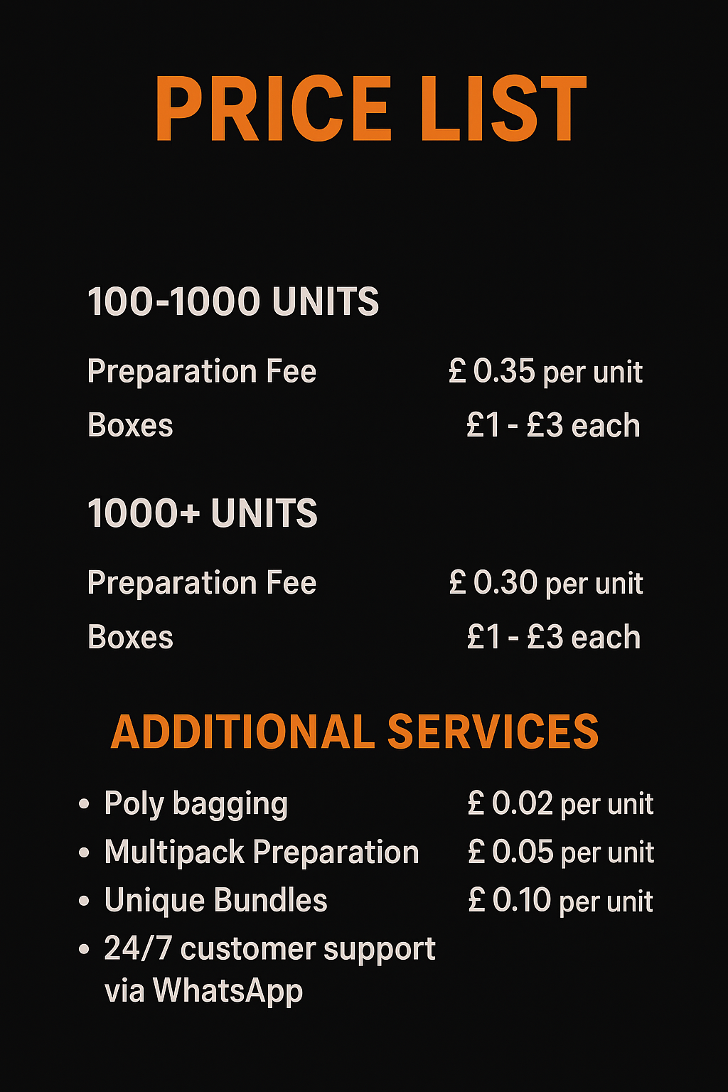Our growing team of 5+ experienced staff provides fast, reliable FBA prep services in the UK. From receiving and inspection to shipping directly into Amazon fulfillment centres, we ensure every unit is handled with care and accuracy.
